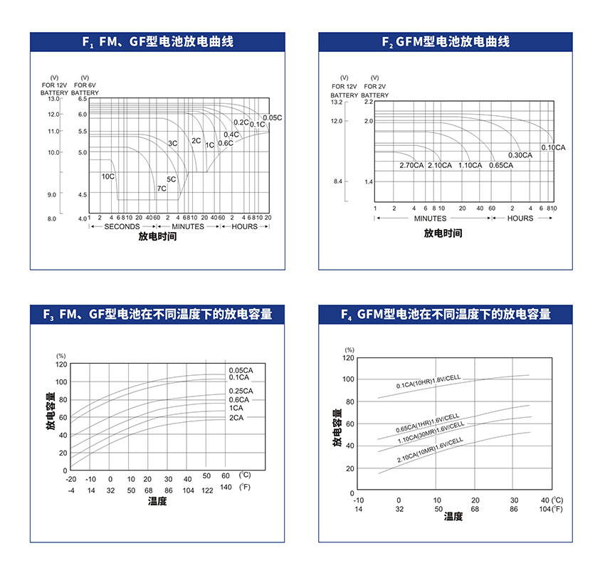 F1表示FM、GF型電池在不同放電倍率下的放電曲線(xiàn);